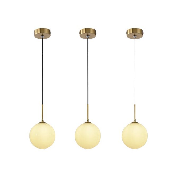 3 Pendente Dourado Globo Vidro Branco Ø12cm Cabeceira Zan14