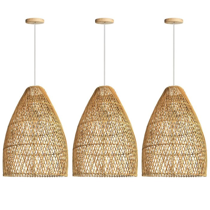 3 Pendente Fibra Natural Rustico de Rattan Bancada Restaurante Nat39