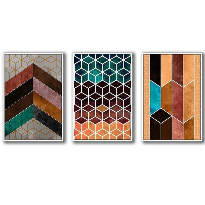 Quadros Decorativos Textura CX Alta 40x60 Chevron Cores 3 Un MEDIDAS - 3 Peças 40x60 cm. MATERIAL - MDF 3mm de espessura. MOLDURA CAIXA ALTA - 1,4cm de espessura e 2,9cm de largura, madeira maciça de reflorestamento, revestida com alta qualidade, 100% livre de imperfeições, cantos com acabamento excelente. TIPO DE IMPRESSÃO - Impressão em alta resolução em vinílico com textura refletiva livre de imperfeições. FINALIZAÇÂO E ACABAMENTO - O quadro decorativo é finalizado com grampos. OBSERVAÇÕES - Material de alta qualidade com textura e refletivo, que reflete a luz do ambiente. - Moldura sem vidro (Por que não vai com vidro? Como nossas imagens são impressas em material vinil brilho altamente durável, dispensa o uso do vidro. Fique tranquilo, sua imagem não corre o risco de desbotar); - Fabricação própria; - O produto pode ocorrer de ter uma leve diferença de tom na cor da que está na tela do seu computador ou celular. LIMPEZA APÓS FIXAÇÃO - A limpeza pode ser realizada apenas com um pano seco macio, se desejar pode ser úmido, porém sem conter álcool ou produtos químicos. Os quadros decorativos são muito utilizados por arquitetos e amantes da decoração. Quadros do mesmo tom, que possuam correlação e que "ornem" entre si podem ser utilizados juntos para dar uma personalização maior a um determinado ambiente. Composições podem ser utilizadas em salas, cozinhas, varandas, quartos ou qualquer ambiente que você queira deixar com a sua cara. Sendo assim a Arte na Arte criou pra você uma enorme variedade em Quadros Decorativos de cores e desenhos que seguem as últimas tendências de decoração. Transforme seu ambiente, decore sua sala, quarto, cozinha, escritório ou presenteie alguém especial com o Quadro Decorativo Arte na Arte. Esperamos que se sinta à vontade e encontre aqui o SEU estilo, e ao olhar pra o seu ambiente, seja ele qual for - possa dizer: "Agora meu ambiente está completo!" Tire todas suas dúvidas conosco, estamos sempre à disposição. Imagem ambiente fornecido por Freepik.
