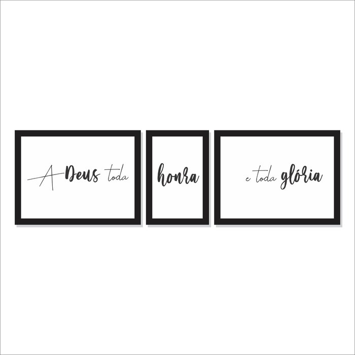 3 Quadros Decorativos Toda Honra e Gloria Deus Sala Quarto:Preto Preto