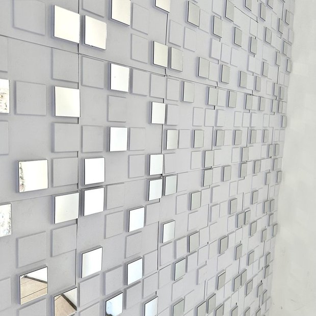 30 Placas 3d Revestimento Parede Espelhado Prata - 25cm Branca