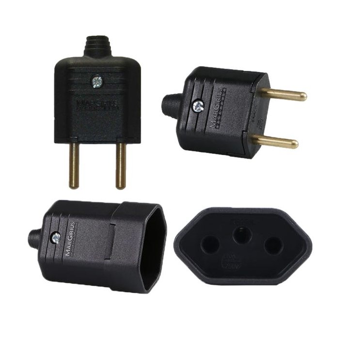 30 Plug Macho 2 Pinos 10a + 30 Tomada Femea 3 Pinos 10a Preto