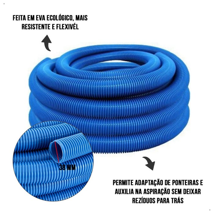 Mangueira para limpeza de piscina 3 metros 38mm + 02 ponteira + Adaptador