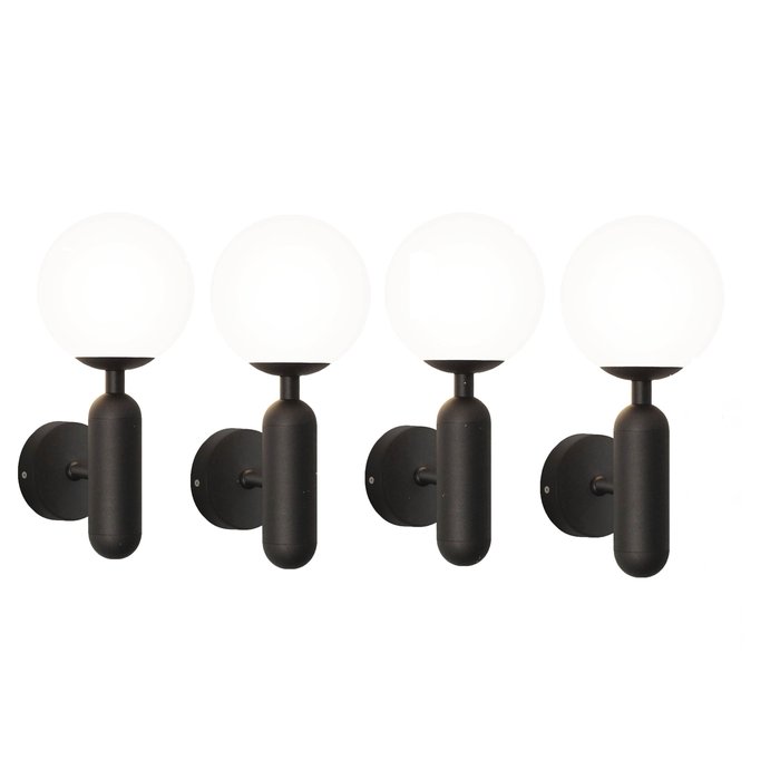 4 Arandela Corredor Preta Esfera De Vidro Branco G9 Lup30