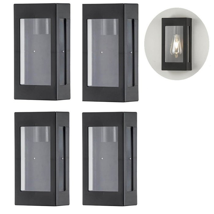 4 Arandela Externa Parede Fachada Retangular Preta E27 Retro Zan88
