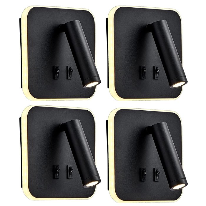 4 Arandela para Cabeceira Quarto Led Interruptor Luz Indireta Bet50 Preto