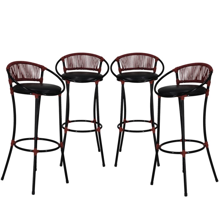 4 Banquetas Havaí Fio de Fibra Artesanal para Bar, Bancada, Lanchonete - Preto Preto/Vermelho