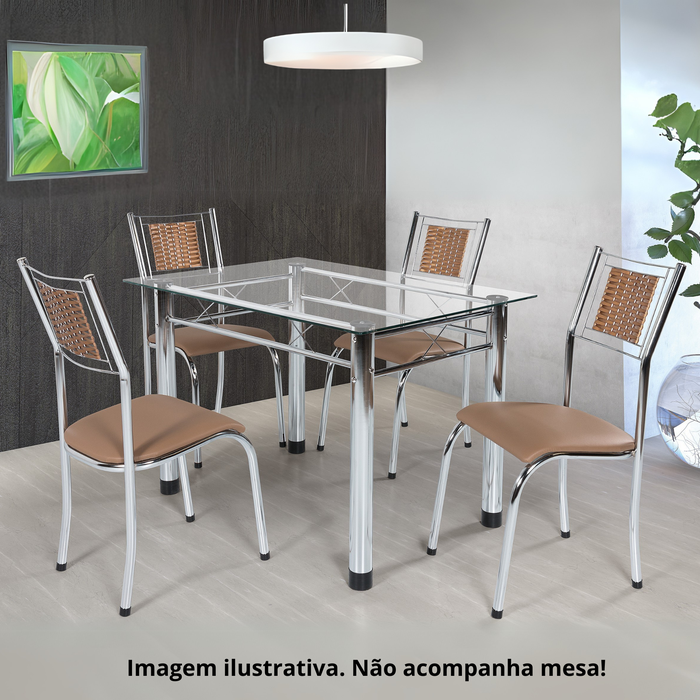 4 Cadeira Jantar Estofada Belize Aço Cromado Encosto Junco Assento Corino Cozinha Sala