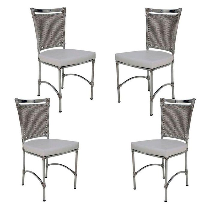 4 Cadeiras em Alumínio e Fibra Sintética Jk Cozinha Edícula Marmore e Nautico Branco