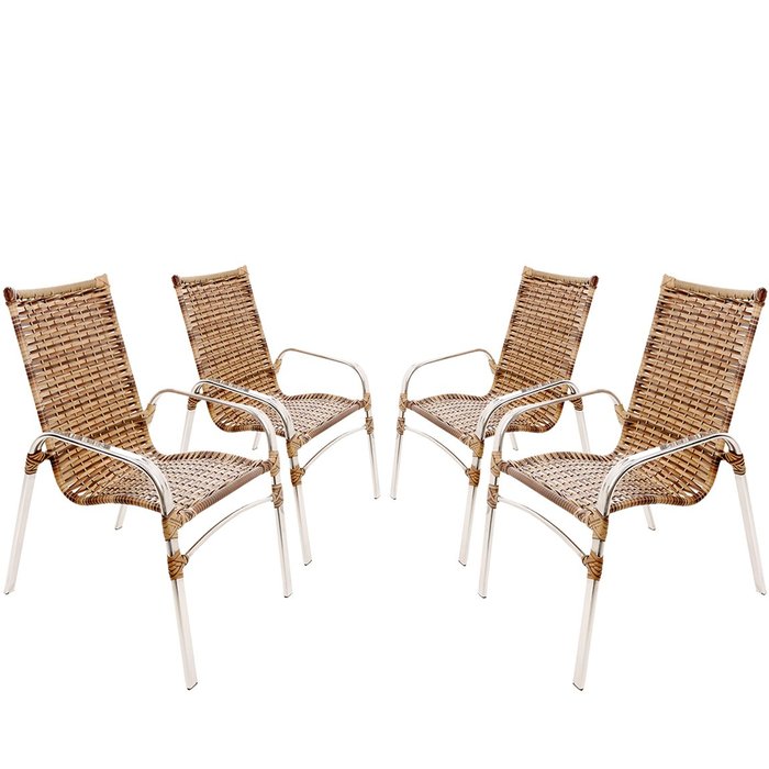 4 Cadeiras Emily Varanda, Jardim, Piscina, Área Gourmet Alumínio e Fibra Sintética Cappuccino,,kk Cappuccino