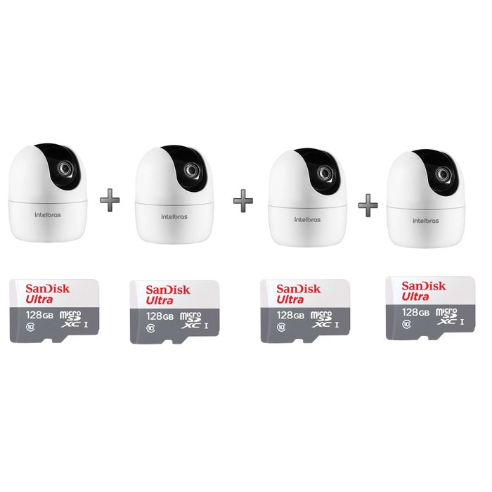 4 Câmeras Wi-fi 360° Im4 C Mibo Intelbras Full Hd+ Cartão Micro Sd 128Gb Ultra Sandisk