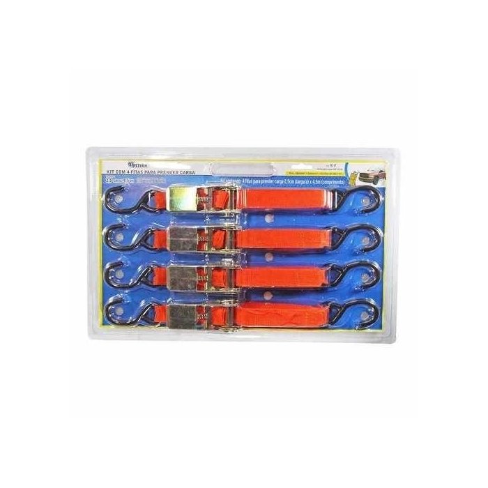 Kit com 4 Fitas/Cintas com Catraca e Gancho Para Prender Carga Até 120Kg