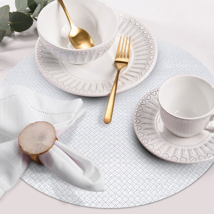 4 Jogo Americano Redondo Cestaria Branco Impermeável Pvc