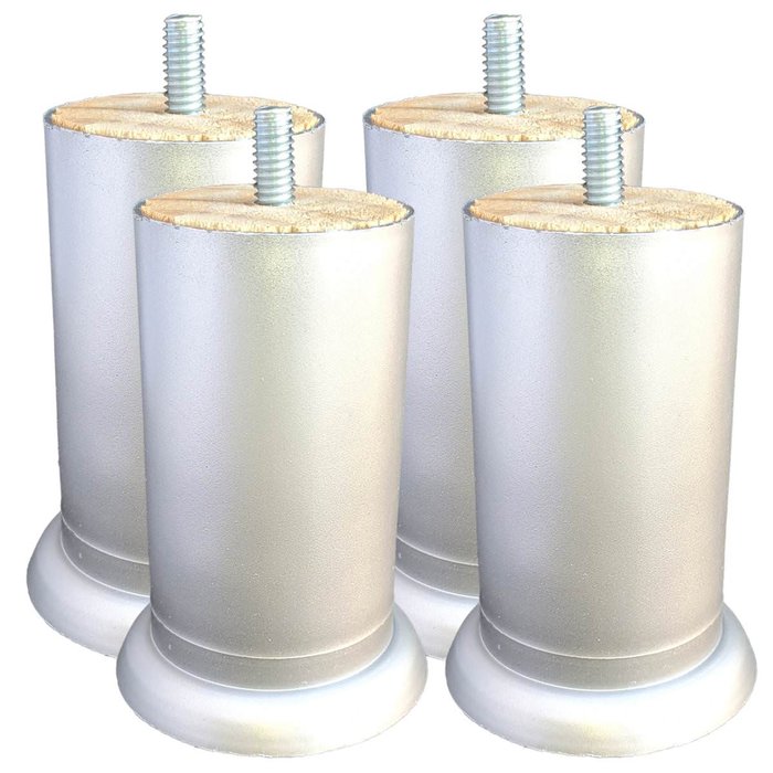 4 Pé Plástico e Madeira com Rosca Reta P/ Sofá Cama Box 10cm Alumínio Fosco