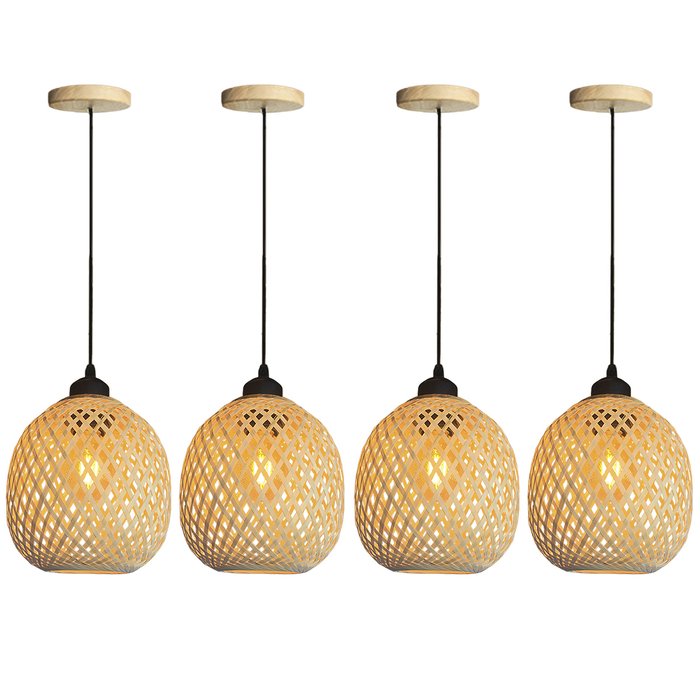 4 Pendente em Fibra Natural Bambu Artesanal Bancada E27 Nat02