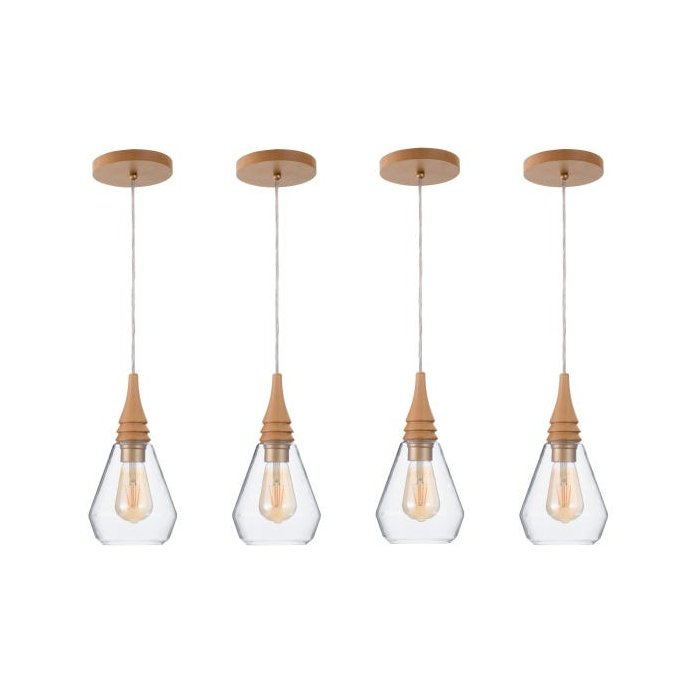 4 Pendente Vidro Transparente e Madeira Natural Ø15x17cm Quarto Alu45