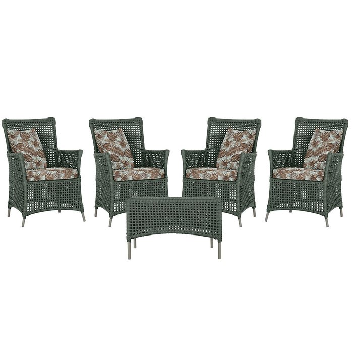 4 Poltronas e 1 Mesa Igapó em Alumínio Pintura Fendi Corda Náutica Estofado 6 Verde