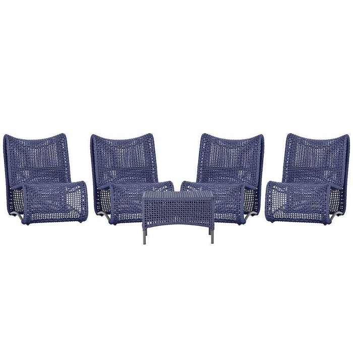 4 Poltronas E Mesa Texas Alumínio Preto Corda Náutica Trama Azul