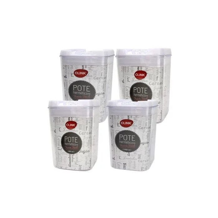 4 Potes Porta-Mantimentos Herméticos Acrílico Transparente com Trava