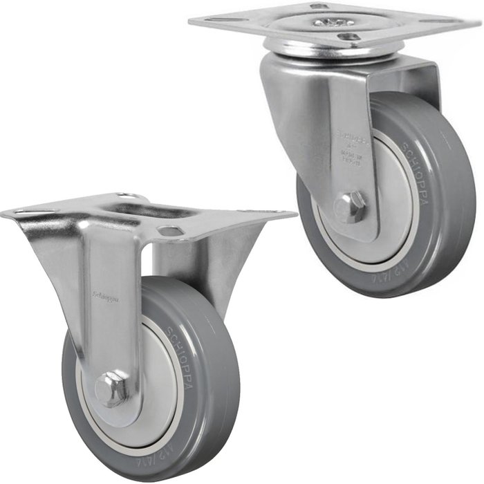 4 Rodízio Giratório Gl 412 Bp + 2 Roda Fixa Pvc Placa sem Freio 4 Polegadas Fl 412 Bp Schioppa
