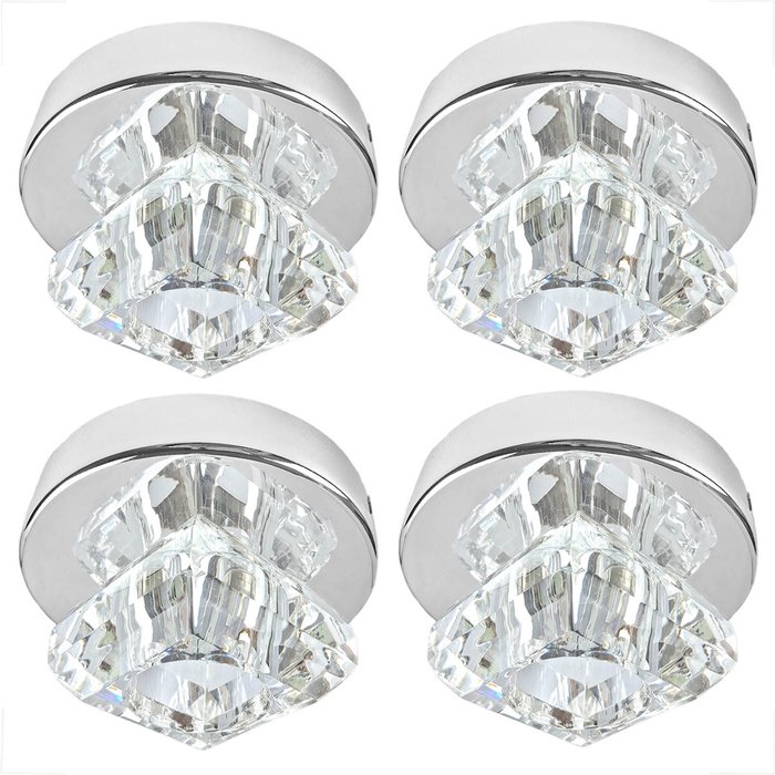 4 Spot de Cristal Sobrepor Redondo Polido Quarto Bet47 Prateado