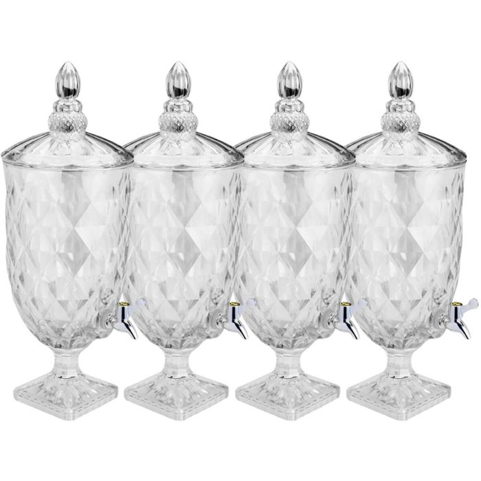 4 Suqueiras Cristal 5l com Pé Diamond Lyor Torneira Bar Restaurante Incolor
