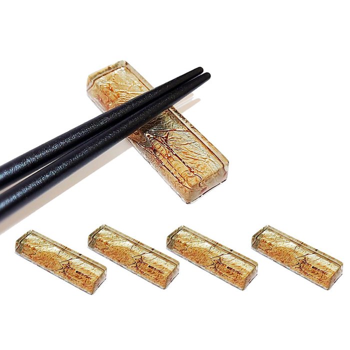 Kit 4 Hashioki Descanso para Hashi (Palitinho Japonês) Ouro Craquelado.