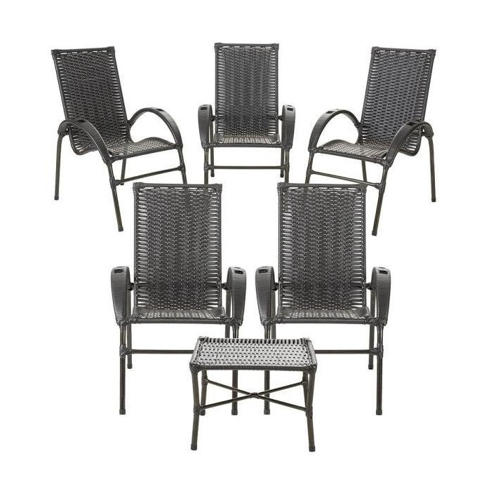 5 Cadeira e 1 Mesa de Centro Cravo Area Varanda Jardim Ferro Fibra Tabaco Tabaco