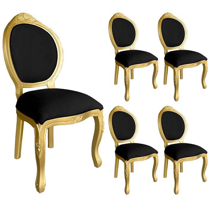 5 Cadeira Medalhao Madeira Maciça Design Ingles Luxo Poltrona Entalhada Renascentista Natural Ingles