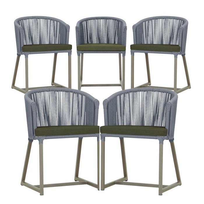 5 Cadeiras de Jantar Área Noronha em Alumínio com Pintura Fendi Corda Náutica E13 Trama Original Prata