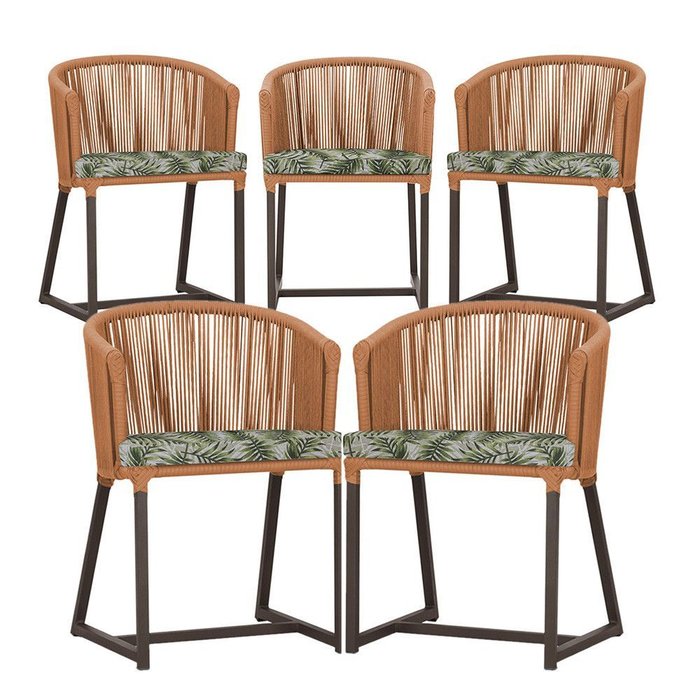 5 Cadeiras de Jantar Área Noronha em Alumínio com Pintura Marrom Corda Náutica E5 Trama Original Terra Cota