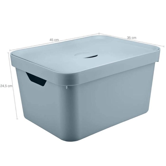 Com design moderno e funcional, essas caixas organizadoras grandes possuem tampa, que oferece mais segurança e facilidade no armazenamento. Na elegante cor Azul Glacial, elas adicionam um toque de sofisticação a qualquer ambiente. Produzidas em material resistente, são perfeitas para manter tudo organizado, seja no quarto das crianças, no closet ou em outros espaços. Aproveite para otimizar o seu espaço e deixar sua casa mais arrumada e cheia de estilo! Possui aberturas laterais para facilitar o transporte.
