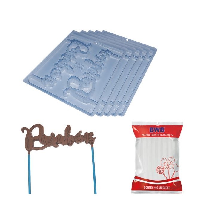 Prepare receitas incríveis com a nova forma para chocolate Forma Topo de Bolo Parabéns. Ideal para uma rápida preparação com muita praticidade. Acompanha Palitos que além de serem perfeitos para topo de bolo, também são ideais para serem usados em pirulitos, ballon cake, artesanatos e entre outros, tornando excelente para decoração de festas em geral. Confira e adquira o seu!