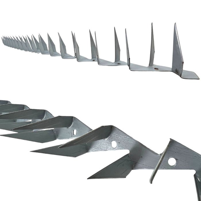 5 metros de lança com ponta dupla, sendo 5 Lanças com 1 metro cada protetoras, fornece mais pontas lanças por metro do que as lanças normais, funciona como uma concertina com pontas cortantes e apresenta um visual mais atraente que os velhos "caco de vidro " sobre o Muro. É fornecida em barras de 1 metro de comprimento, com pontas de 8 cm e que tem distancia de 3 cm umas das outras em duas fileiras, e espessura de chapa de 2mm. Projetada para facilitar a instalação. Há um espaço entre os lados, ideal para atravessar parafusos com uso de arruelas para fixar, por isso não há necessidade de furar.