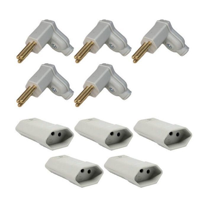 5 Plug Macho 3 Pinos 10a 90 Graus + 5 Tomada Femea 3 Pinos 10a branco
