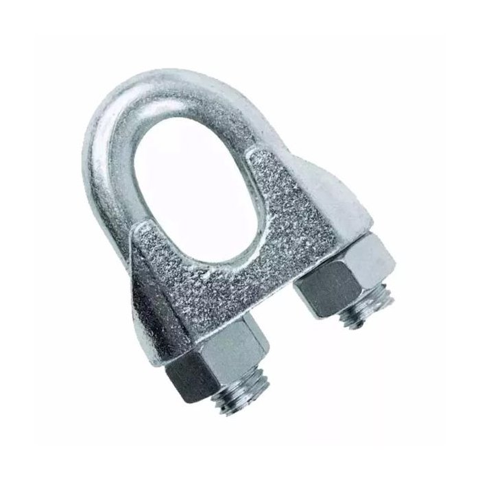 Grampo para cabo de aço tipo leve fabricado em aço maleável fundido galvanizado.
