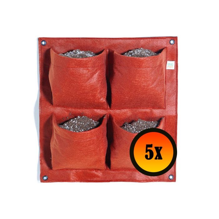 5 Vasos De Feltro Horta de Parede Quadrado 4 Plantas Vermelho
