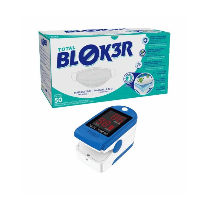 50 Máscara Cirurgica Tripla Descartavel Total Bloker + Oximetro Anvisa
