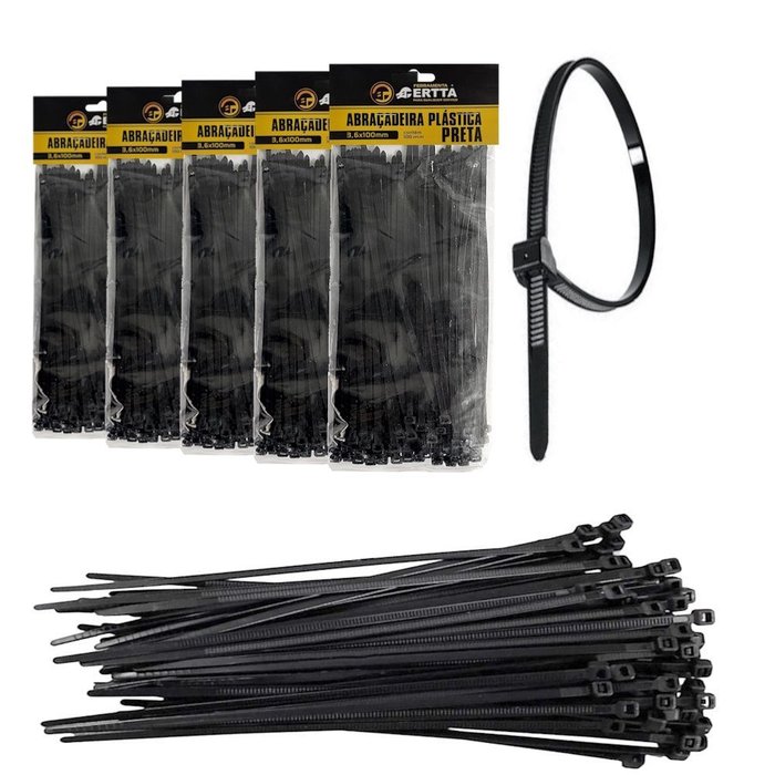 500 Enforca Gato Cinta Plástica Abraçadeira Lacre de Nylon 3.6x100mm Fita Hellerman 10cm Preto Preto