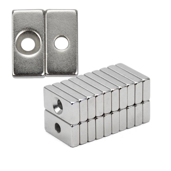 5pcs. Imã De Neodimio Retangular 20x10x4mm Com Furo - N35