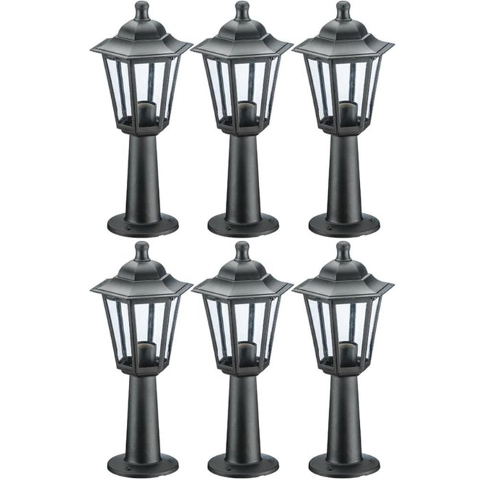 6 Balizadores Luminárias de Chão Muro 44x18cm Preto Colonial Termoplástico Grega Dital Preto