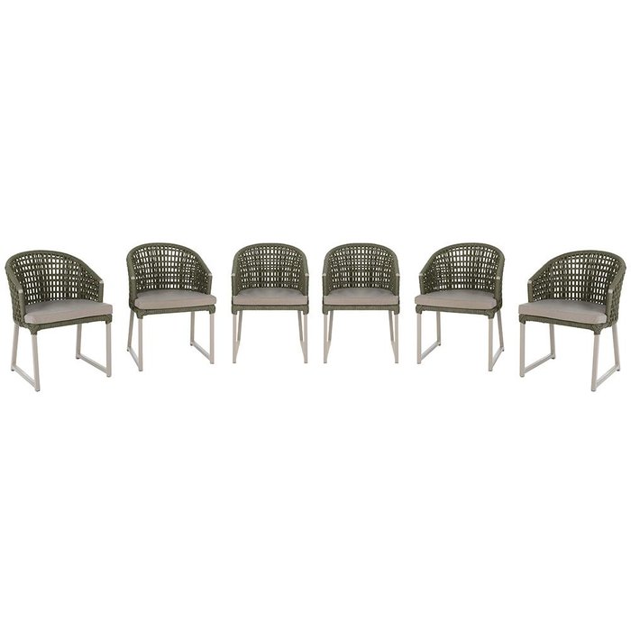 6 Cadeira Noronha Aluminio Micro Pintura Champanhe, Tr. Telinha Corda Nautica Verde Militar,