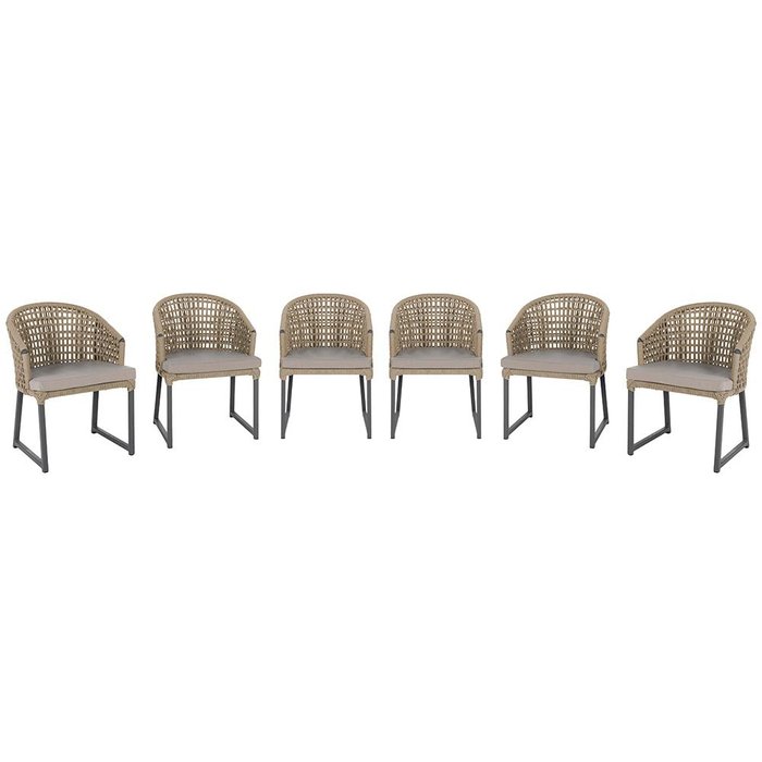 6 Cadeira Noronha Aluminio Micro Pintura Preta, Tr. Telinha Corda Nautica Rami, Estofado - Fendi