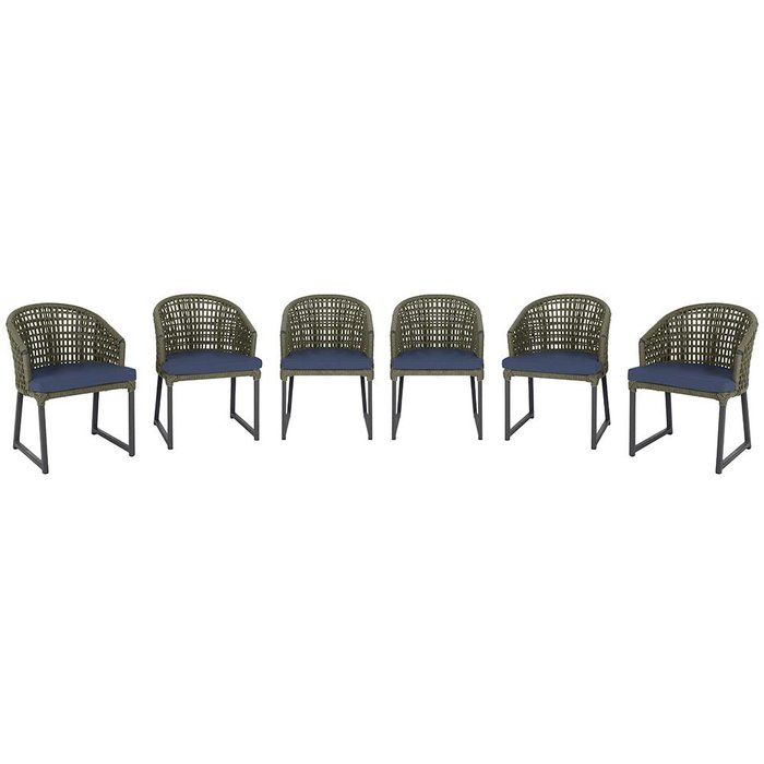 6 Cadeira Noronha Aluminio Micro Pintura Preta, Tr. Telinha Corda Nautica Verde Militar, Estofado -