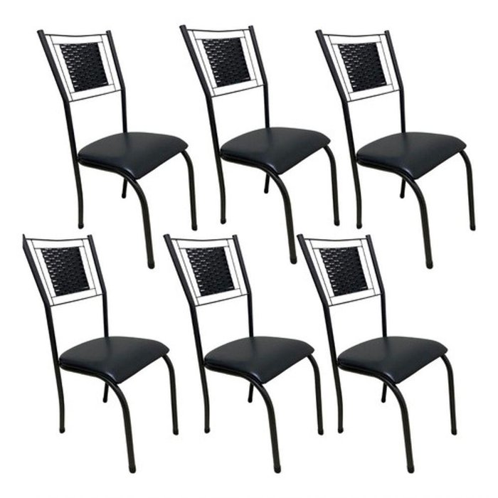 6 Cadeira Sala Jantar Mesa Cozinha Americana Tubo Preto Preto