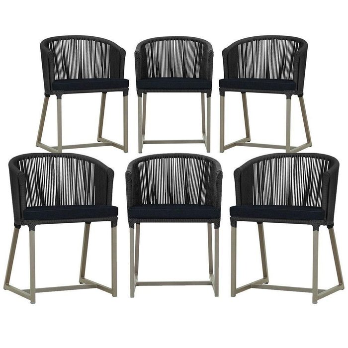 6 Cadeiras de Jantar Noronha Fendi Corda Náutica E12 Trama Preto