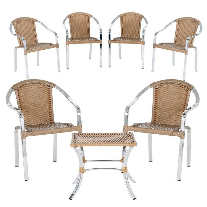 6 Cadeiras De Area Em Aluminio E Fibra Sintetica Tóquio E 1 Mesa De Centro, Jardim - Ráfia