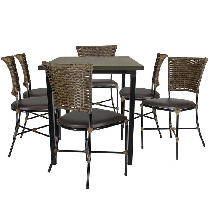 Conjunto Cadeiras de Jantar Gramado - PANERONossos produtos são de altíssima qualidade, leve, acabamento e design moderno, garantindo assim conforto e praticidade para seu bem-estar.Itens inclusos: - 6 Cadeiras .- 1 Mesa De jantar com Tampo.Especificações.- Estrutura: Aço Carbono, resistente;- Acabamento: Fibra sintética com UV Protection (vime/junco);- Solda: Solda Mig, de alta resistência;- Pintura: Pintura eletrostática epóxi de alta qualidade;- Assento: Com Madeira, espuma D28, revestido com tecido;- Tampo MDF.FABRICANTE: PANEROAmbientes: Sala de Estar, Sala de Jantar, Área Gourmet, Varanda, Cozinha, edícula, área, sacada, área de Piscina, área de lazer, Festa, Reunião, área de Churrasco, entre outros.Fibra Sintética especial com UV PROTECT que proporciona maior durabilidade e Resistência ao Sol, são produzidas com materiais de altíssima qualidade.GARANTIA: 90 dias.Design Moderno proporciona a ambientação e decoração para diversos ambientes e para todos os gostos!Fácil de Limpar – Utilize Sabão Neutro para a limpeza das fibras e estruturas.TGA Você também pode buscar por - Conjunto de cadeiras, Cadeiras de Jantar, Jogo de Jantar, kit de Jantar, combo de Jantar, Cadeiras de Jantares, jogo de cadeiras, cadeiras e mesa, cadeira de área, cadeira de descanso, cadeira confortável, Cadeira e mesa, Cadeira de vime, cadeira de fibra, cadeira artesanal, cadeira de junco, Jogo de mesa, conjunto de mesa, área gourmet, cadeira artesanais, móveis artesanais, móveis artesanais, kit de cadeiras, kit 4 cadeiras, combo de cadeiras.