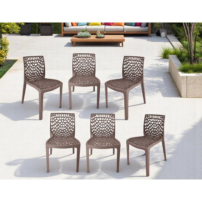 Com design moderno e encosto vazado, a Cadeira Gruvyer alia estilo, conforto e praticidade. Fabricada em polipropileno de alta qualidade, é resistente à umidade, sol e impactos, ideal para ambientes internos e externos.