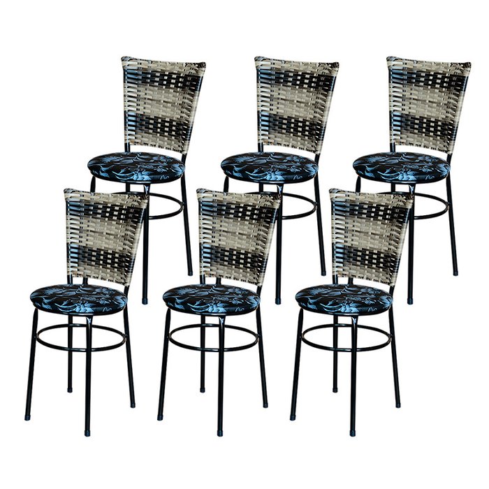 6 Cadeiras para Cozinha Preta Hawai Cappuccino Premium Assento Floral:floral Preto